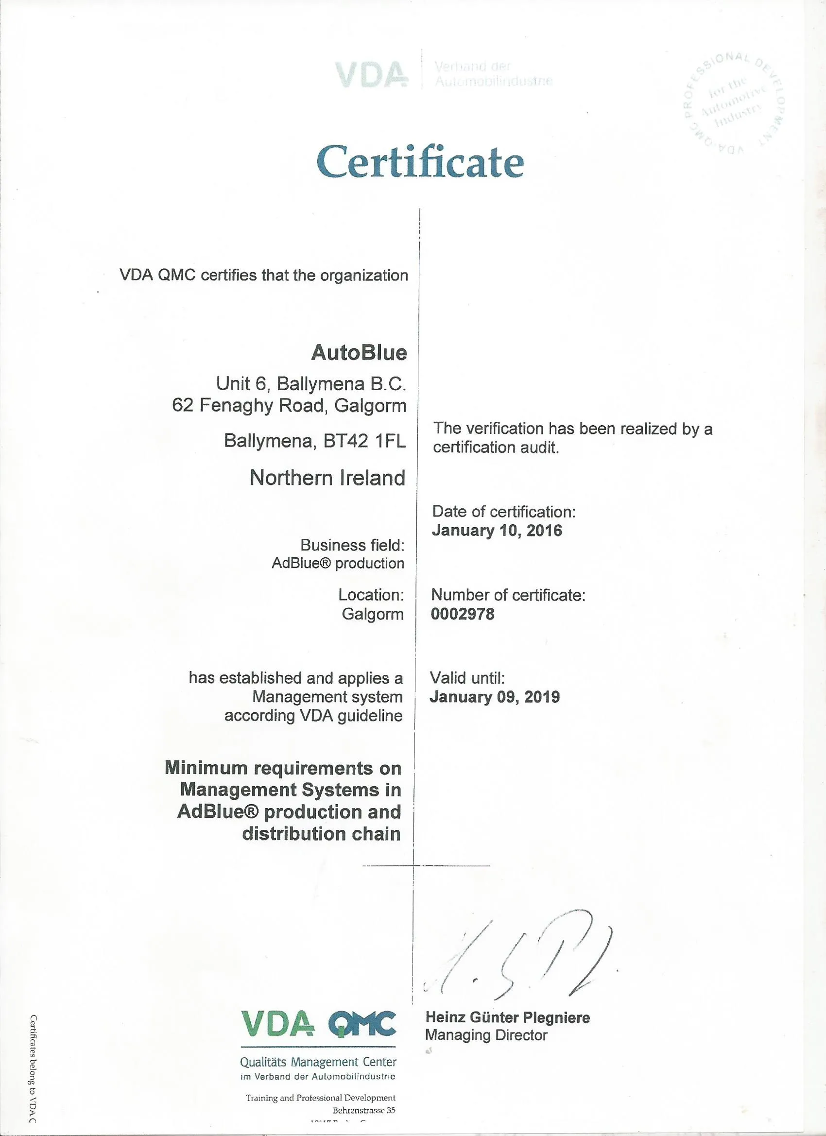 Auto Blue meets all Manufacturers Warranties for all European countries.